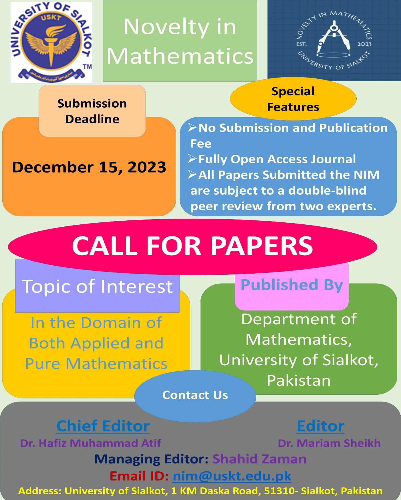 - Introduction: Novelty in Mathematics (NIM) is a peer-reviewed journal that provides an advanced forum for studies related to mathematics supervised by the University of Sialkot, Punjab, Pakistan. NIM publishes articles with novel applications of more familiar mathematical techniques and analyses of real problems, indicating the need for new mathematical approaches.
